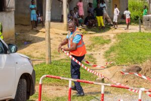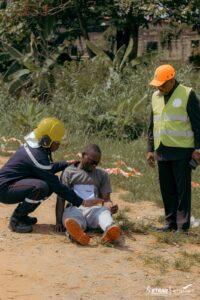 Nous sommes au PK 2+200, une zone habitée. La situation est préoccupante et urgente. La cellule de crise mise en place semble débordée et c’est tout naturellement que son responsable alerte les pompiers d’Owendo, tandis que le médecin chef appelle l’unité sanitaire la plus proche, donc le CHUO. Les premiers arrivés sont les pompiers. Un Poste de Commandement de crise est mis en place pour recueillir les renseignements auprès de l’équipe de Setrag, début des opérations de lutte incendie et brancardage des victimes jusqu’au poste médical avancé. Arrive ensuite les éléments du Centre Hospitalier Universitaire d’Owendo qui après prise de renseignements auprès des équipes de la Setrag débutent leurs opérations de prise en charge des victimes et de leurs évacuations vers le CHUO. Pour la Setrag, les informations de l’incident sont remontées à la Holding Eramet par le directeur général.